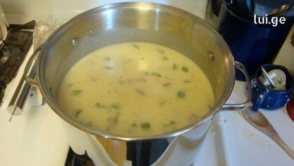 Turn off the heat, add sour cream, and stir well until the soup becomes creamy and smooth.